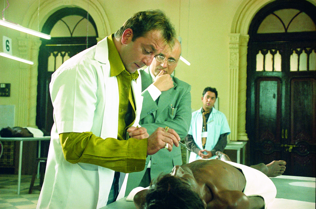 Munna bhai is a happy man. He lives with his gang in the bylanes of a dhobi ghat in Mumbai, takes pride in being a “Social worker” (they actually settle ‘financial disputes’ through ‘dadagiri’) and enjoys his booze, babes and brawls, followed by a good night’s sleep. Not much bothers Munna. Except his parent’s annual visit from the village. Munna’s father, Hari Prasad Sharma, an upright, moralistic man believes that his son is actually a doctor running a charity hospital. Each year, when his parents arrive, Munna and his gang bathe, shave, don white coats and stethoscopes and pretend to be diligent doctors. This year, the clever charade falls apart. Sharma runs into an old friend, Dr Asthana who has a daughter called Suman. The two decide that their children, both doctors, would make the perfect match. Munna tries hard to get out of the situation but Dr Asthana discovers the truth and humiliates Munna in front of his father. Broken by the truth and ashamed of his son, Hari Prasad Sharma removes his spotless white turban and cries. Munnabhai then takes a decision that will change many lives; he decides to become a doctor. And then begins a hilarious and heartwarming journey of a local goon into the medical world – a world in which he neither belongs nor believes in. The film’s tag line – “STATUTORY WARNING: He might just cure you”, says it all…